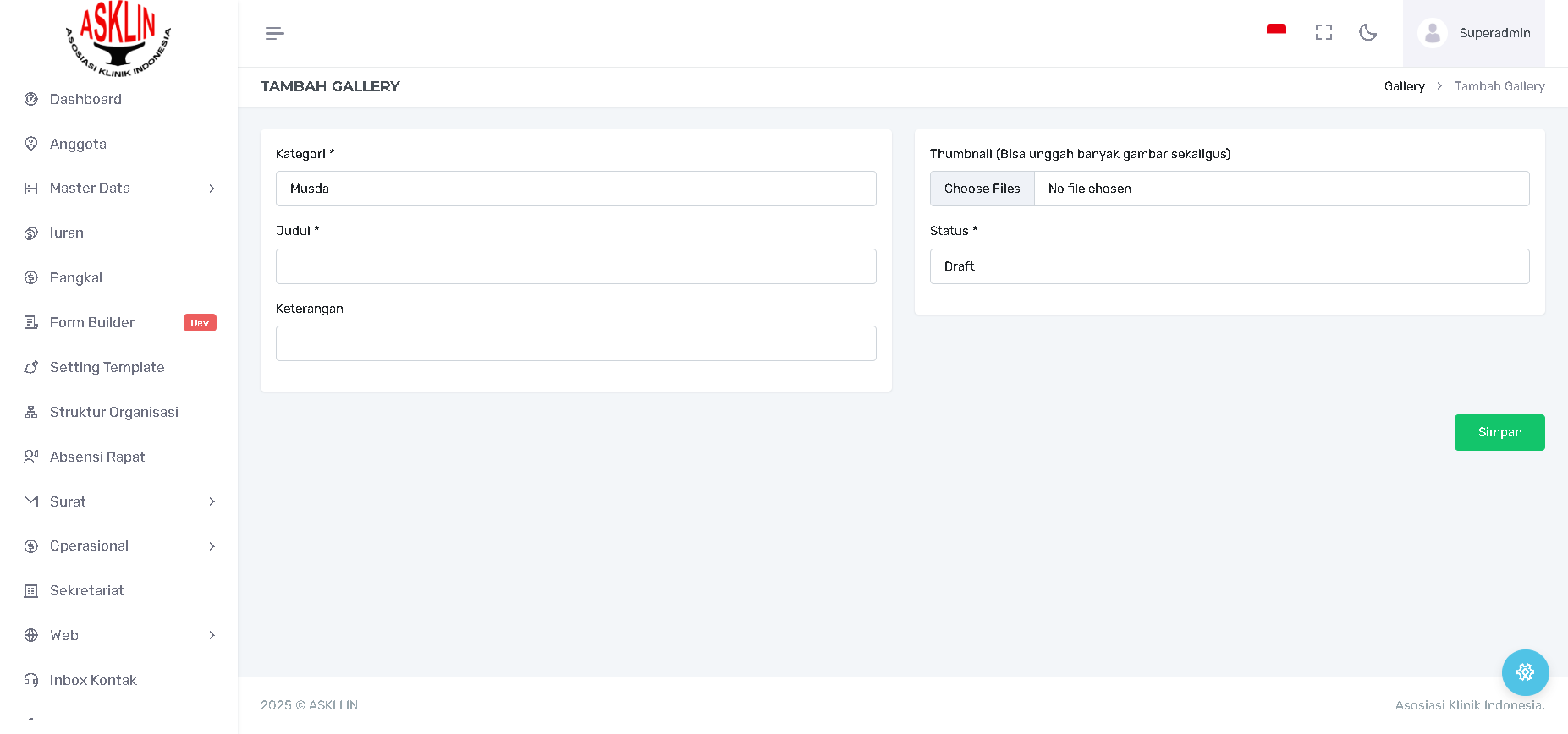 Kategori: Memilih kategori yang relevan (Musda yang diambil dari master data Kategori Gallery sebelumnya).
