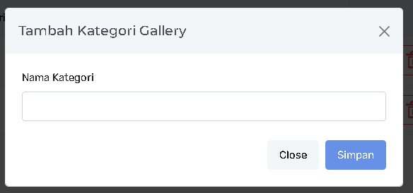 Proses Input: Mengisi detail pada formulir pop-up "Tambah Kategori Gallery" (