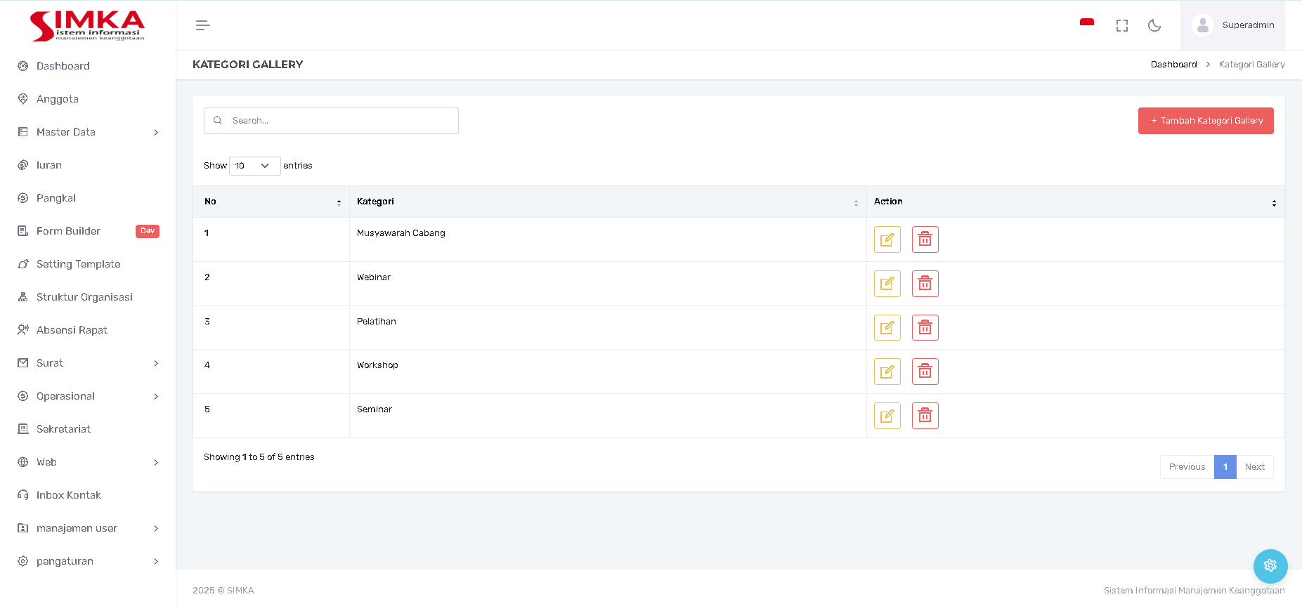 Aksi di Antarmuka: Mengklik tombol "Tambah Kategori Gallery" (berwarna merah, di kanan atas
