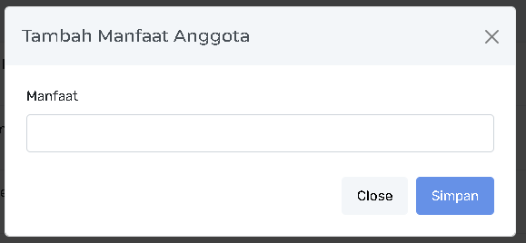Proses Input: Mengisi detail pada formulir pop-up "Tambah Manfaat Anggota" (