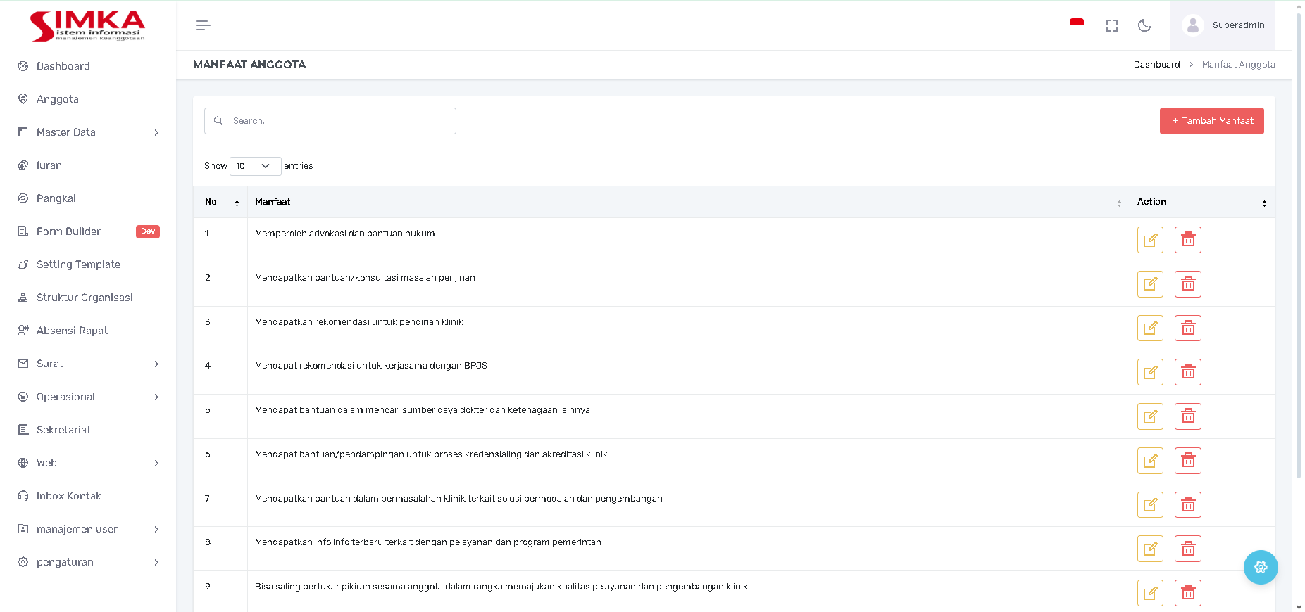 Aksi di Antarmuka: Mengklik tombol "Tambah Manfaat" (berwarna merah, di kanan atas
