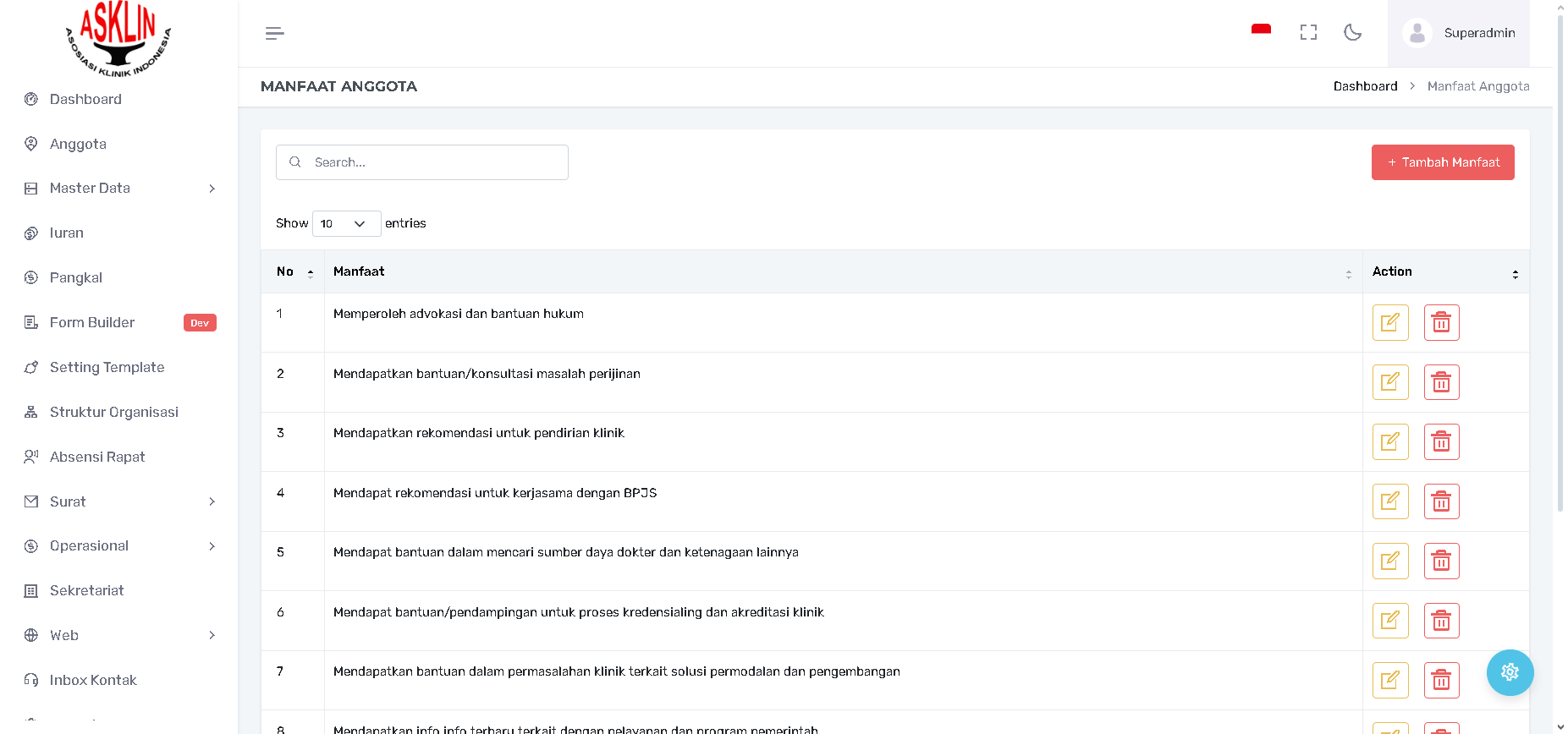 Aksi di Antarmuka: Mengklik tombol "Tambah Manfaat" (berwarna merah, di kanan atas