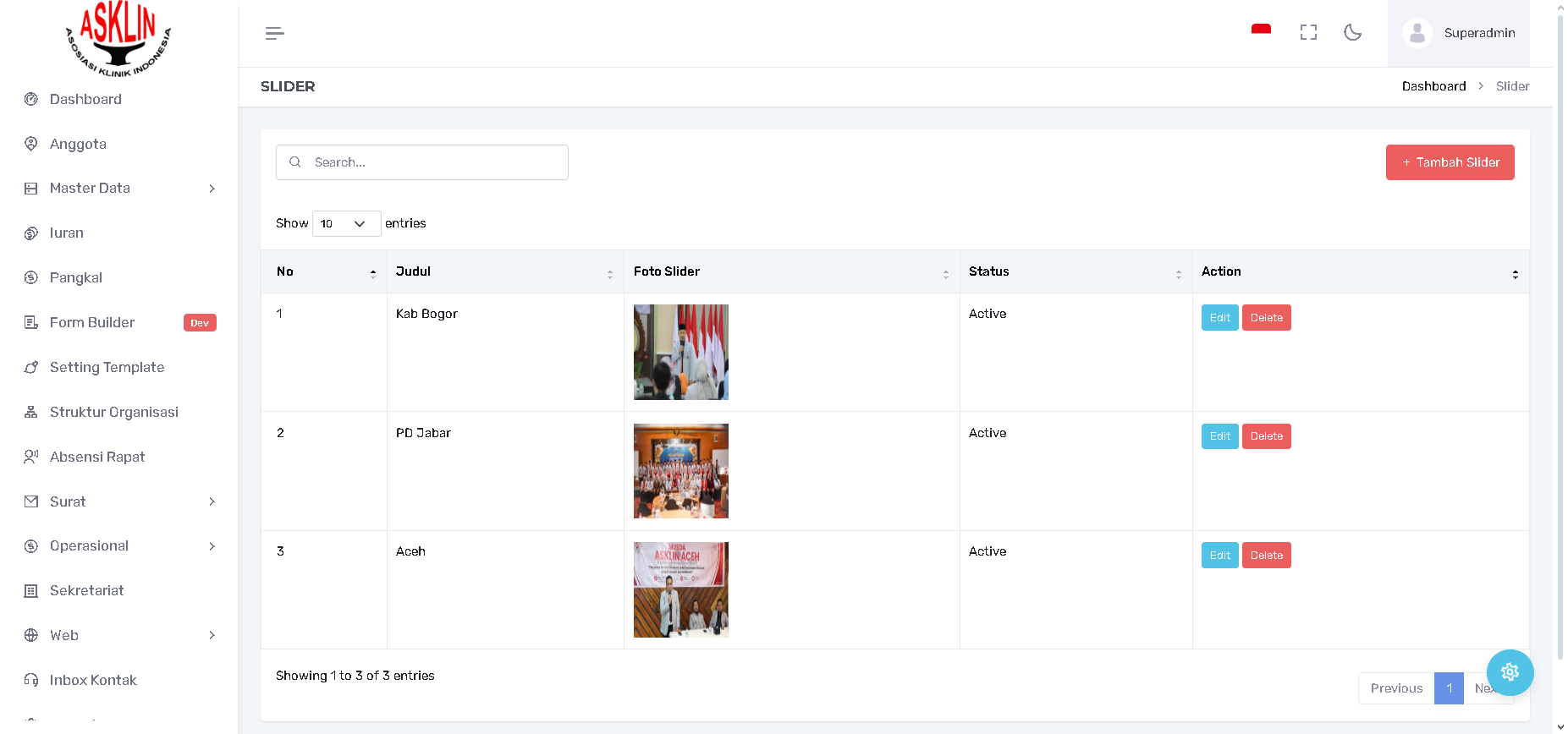 Aksi di Antarmuka: Mengklik tombol "Tambah Slider" (berwarna merah, di kanan atas