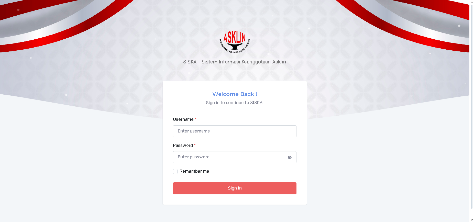 Jika kredensial Anda benar, Anda akan langsung diarahkan ke Dashboard utama SIMKA, di mana Anda dapat mulai mengelola data dan fitur klinik Anda.