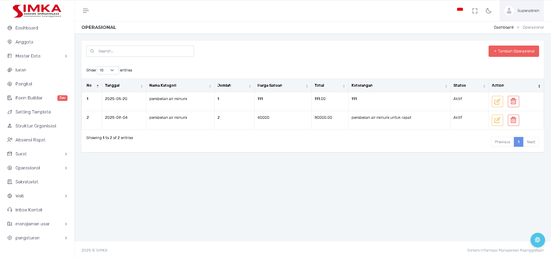 Aksi di Antarmuka: Mengklik tombol "Tambah Operasional" (berwarna merah, terlihat di