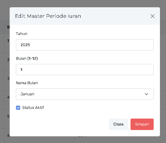 Fitur ini digunakan untuk memperbarui status atau detail periode iuran yang sudah terdaftar.