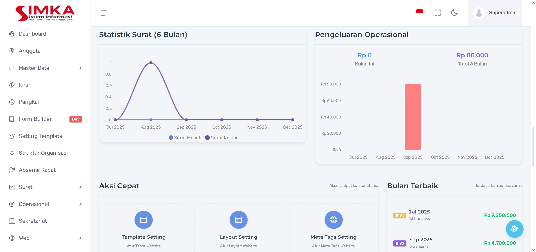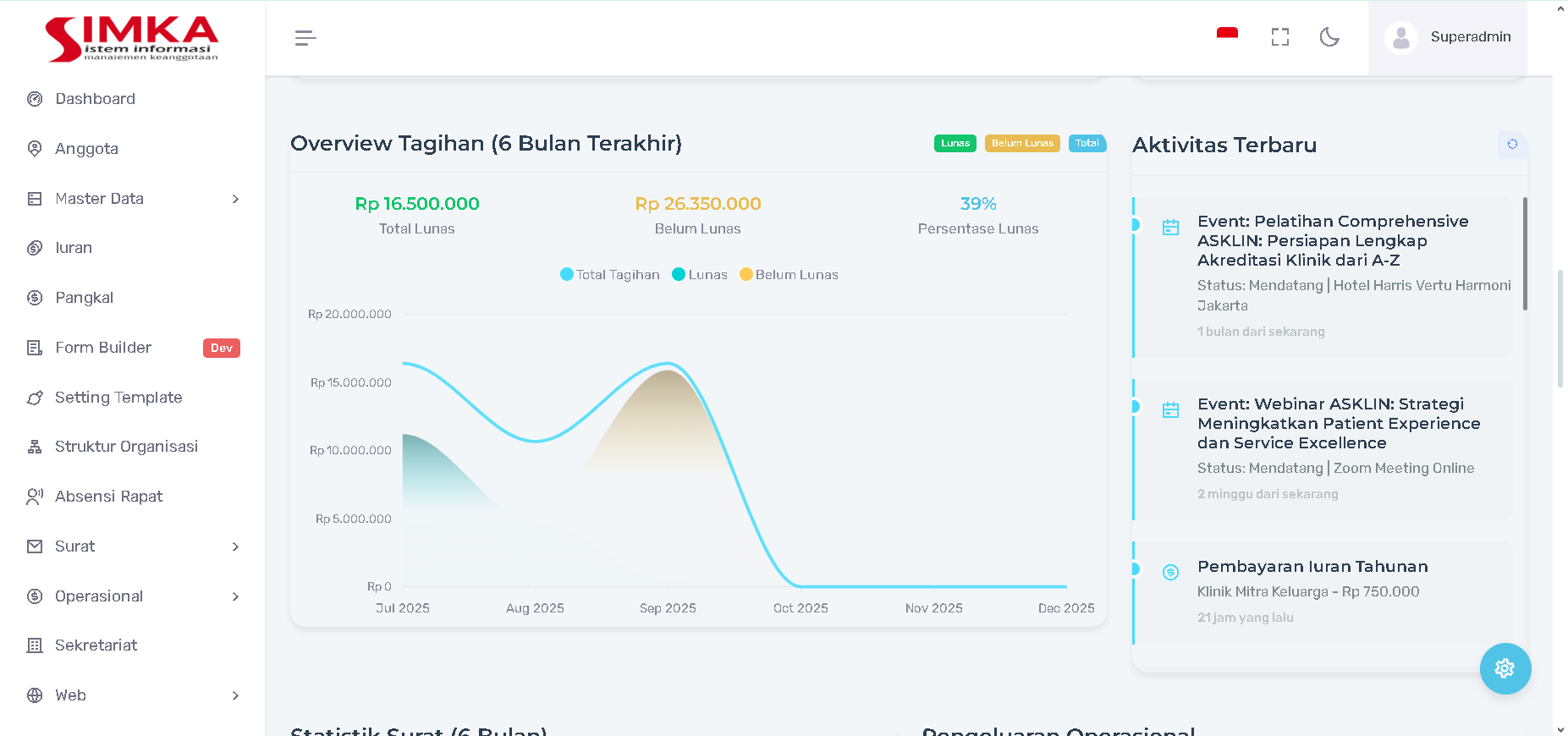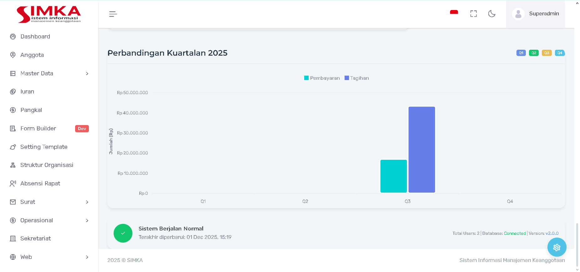 | Total Dibayar | Jumlah iuran yang sudah lunas dan terverifikasi pada periode berjalan. | Melacak kinerja pengumpulan iuran. |