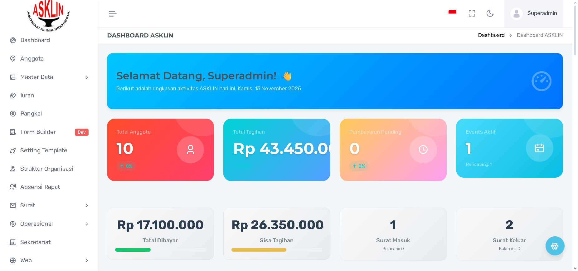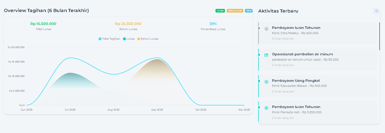 | Total Dibayar | Jumlah iuran yang sudah lunas dan terverifikasi pada periode berjalan. | Melacak kinerja pengumpulan iuran. |
