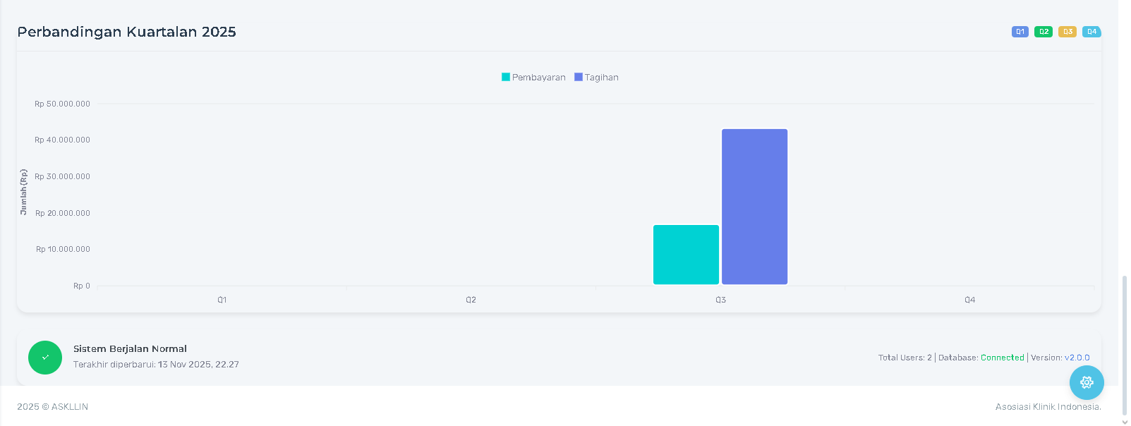 | Total Tagihan | Jumlah total nominal tagihan iuran yang sudah dikeluarkan. | Total piutang yang harus dilunasi anggota. |