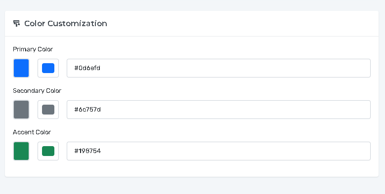 Field yang tersedia: Primary Color, Secondary Color, dan Accent Color.