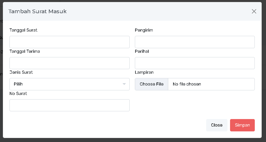 Sistem akan menampilkan kembali formulir yang mirip dengan "Tambah Surat Masuk" (