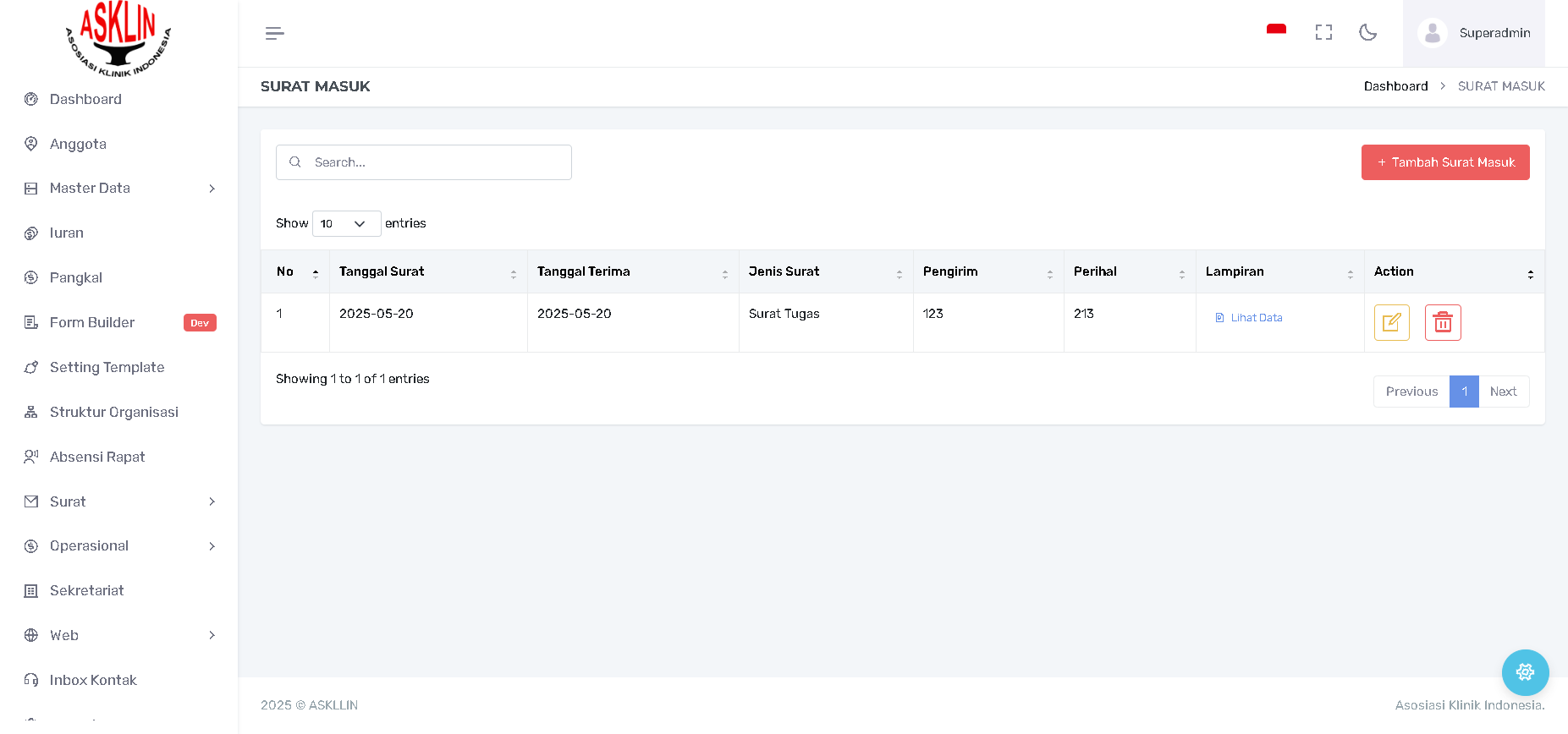 Aksi di Antarmuka: Halaman utama "SURAT MASUK"